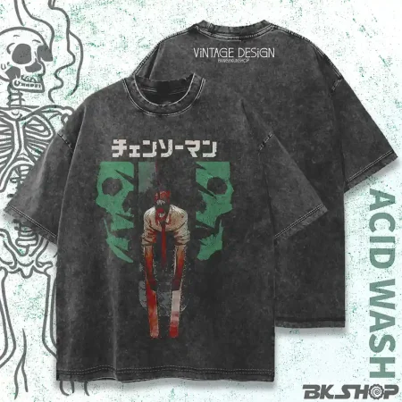 Chainsaw Man Denji Acid wash Vintage TSHIRT STREETWEAR by Banga Kun Shop | CSM Drop shoulder Premium