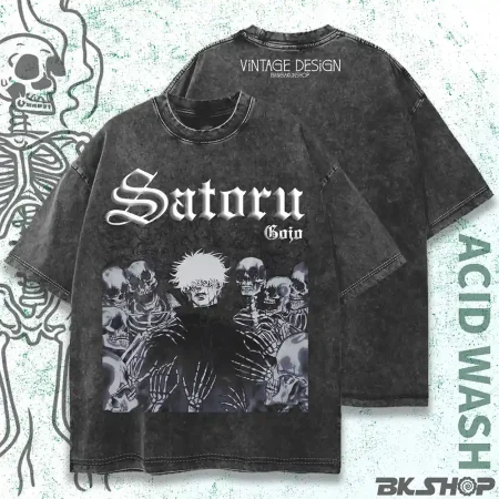 GOJO Acid wash Vintage TSHIRT STREETWEAR by Banga Kun Shop | Jujutsu Kaisen Drop shoulder Premium