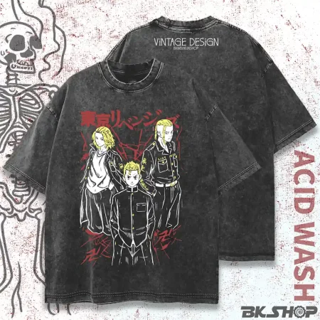 Tokyo Revenger Acid wash Vintage TSHIRT STREETWEAR by Banga Kun Shop | Manji Drop shoulder Premium