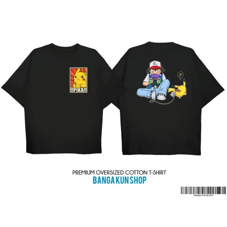 Pokemon Ash and Pikachu Drop Shoulder Premium Black Tshirt