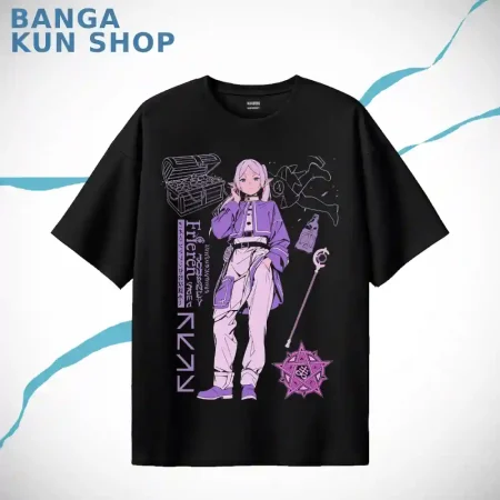 Frieren Anime TSHIRT STREETWEAR by Banga Kun Shop Drops shoulder Premium Black T-shirt – Frieren: Beyond Journey’s End