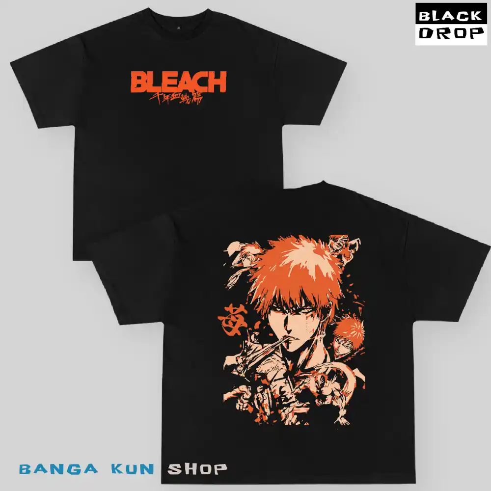 BLEACH Manga Ichigo Kuro Saki Thousand Year blood war ANIME TSHIRT STREETWEAR by Banga Kun Shop Drops shoulder Premium Black T-shirt
