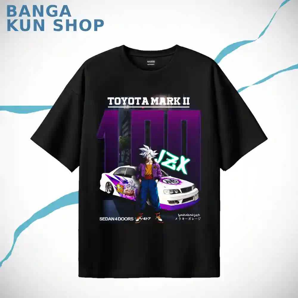 - Design: The T-shirt showcases Toyota Mark 2 JZX100 X Goku Anime TSHIRT STREETWEAR by Banga Kun Shop Drops shoulder Premium Black T-shirt – Dragon Ball Goku JDM
